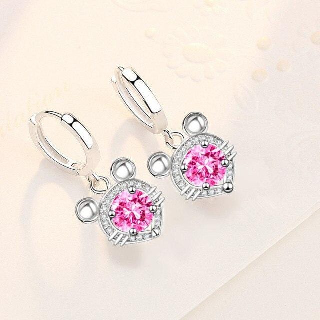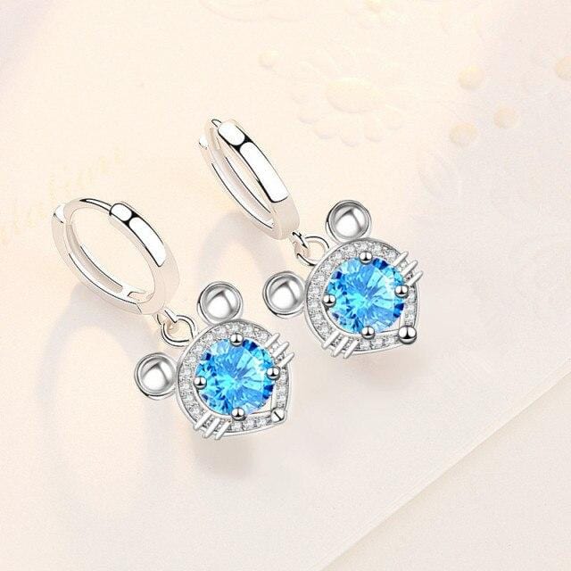 NEHZY 925 Sterling Silver 2021 New Woman Fashion Jewelry High Quality Blue Pink Crystal Zircon Simple Mouse Head Earrings