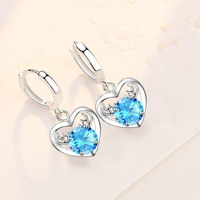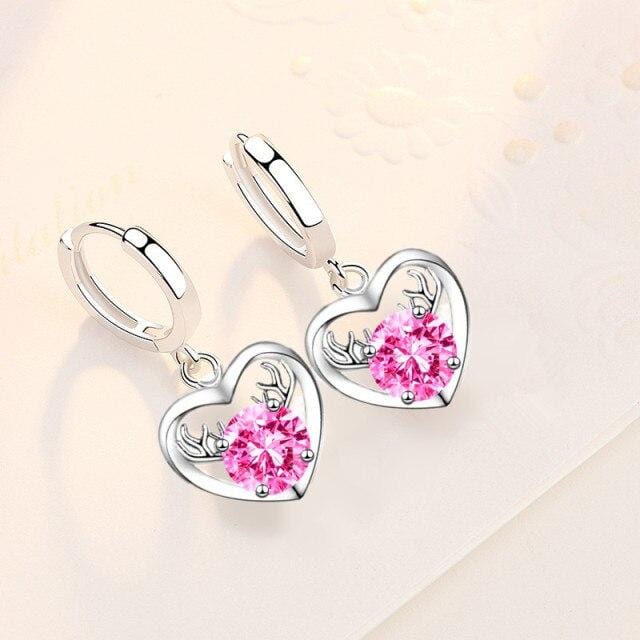 NEHZY 925 sterling silver 2021 new women's fashion jewelry high quality blue pink crystal zircon heart-shaped deer earrings
