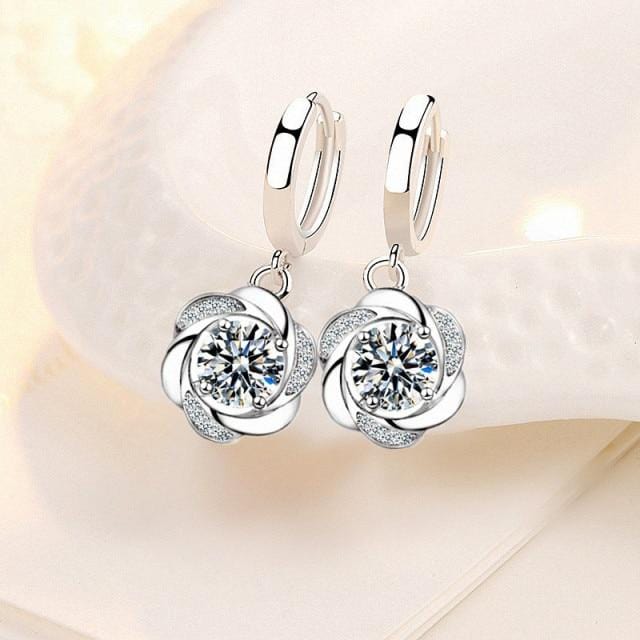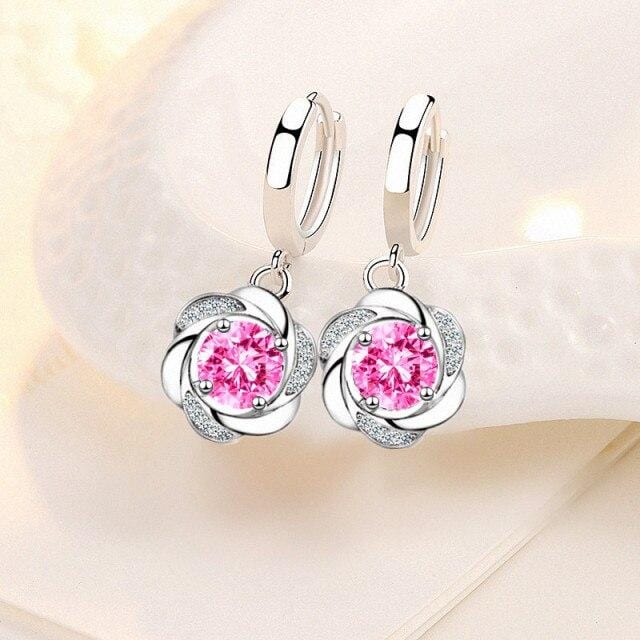 NEHZY 925 Sterling Silver 2021 New Women's Fashion Jewelry High Quality Blue Pink Crystal Zircon Simple Flower Earrings