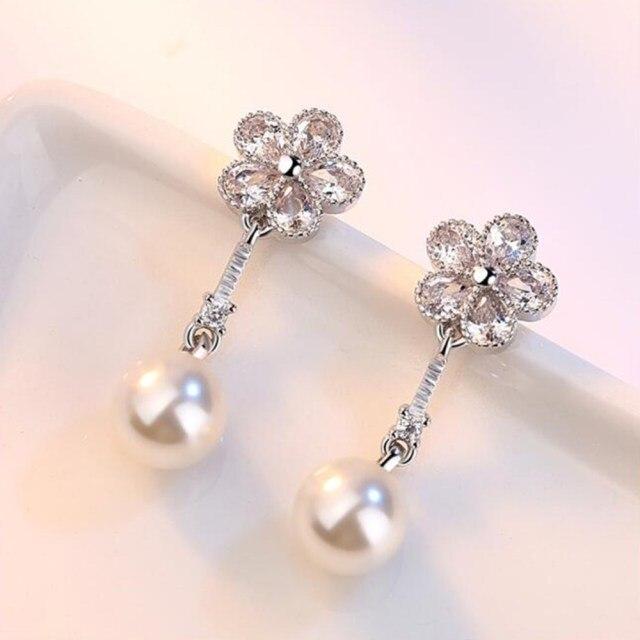 NEHZY 925 sterling silver new Jewelry high quality woman earrings cubic zirconia pearl retro flower bow earrings
