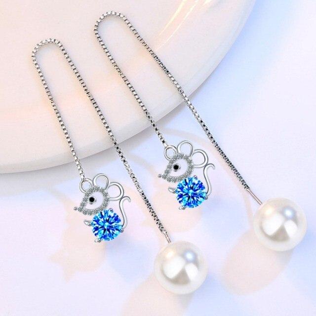 NEHZY 925 Sterling Silver New Woman Fashion Jewelry Ear Line Blue Pink Zircon Crystal Pearl Mouse Long Tassel Retro Earrings