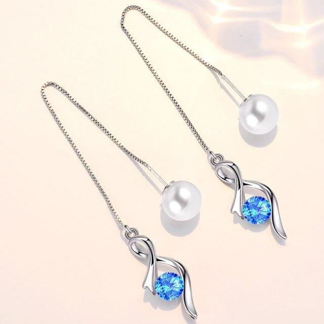 NEHZY 925 Sterling Silver New Woman Fashion Jewelry Heart Ear Line High Quality Crystal Zircon Pearl Long Tassel Retro Earring