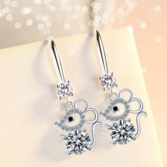 NEHZY 925 Sterling Silver New Woman Fashion Jewelry High Quality Blue Pink White Crystal Zircon Hot Selling Mouse Earrings