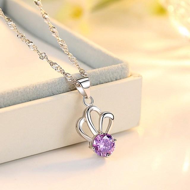 NEHZY 925 Sterling Silver New Woman Fashion Jewelry High Quality Crystal Zircon Crown Pendant Necklace Length 45CM
