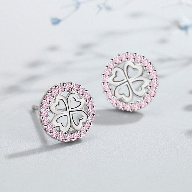 NEHZY 925 Sterling Silver New Woman Fashion Jewelry High Quality Pink Crystal Zircon Four Leaf Clover Hollow Stud Earrings