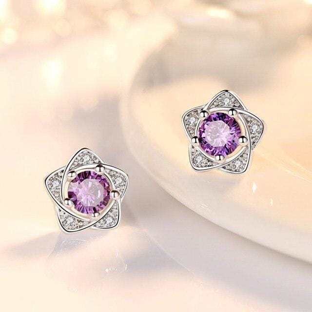 NEHZY 925 Sterling Silver New Woman Fashion Jewelry High Quality Purple Crystal Zircon Pentagram Flower Retro Stud Earrings