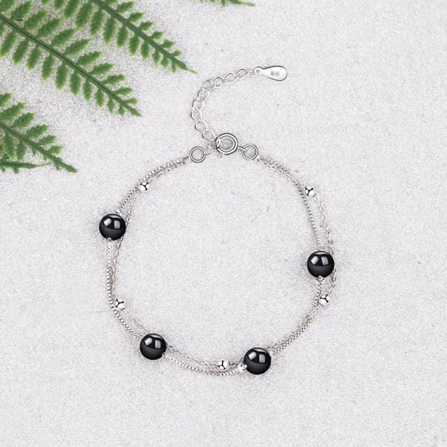 NEHZY 925 Sterling Silver New Woman Fashion Jewelry High Quality Retro Simple Black Agate Gold Silver DIY Bracelet Length 20CM