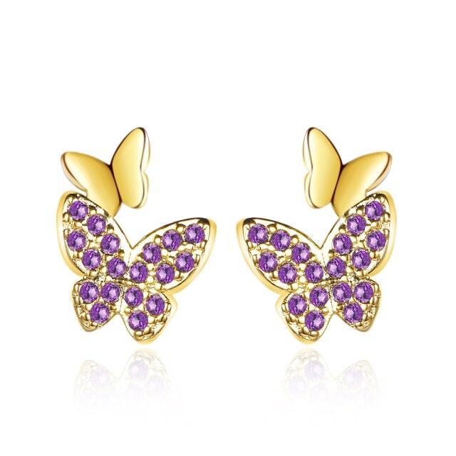 NEHZY 925 Sterling Silver New Woman Fashion Jewelry High Quality Simple Crystal Zircon Color Butterfly Golden Silver Earrings