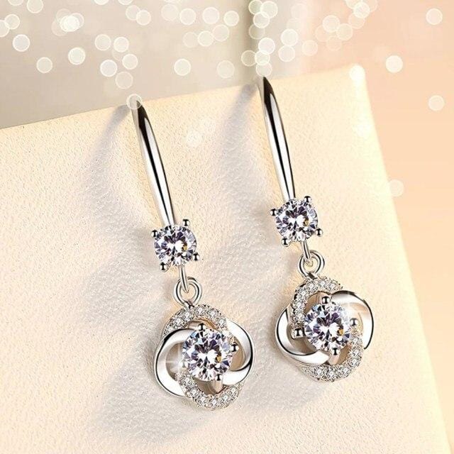 NEHZY 925 sterling silver new woman fashion jewelry purple pink crystal zircon four-leaf clover hot sale Hoops piercing earrings