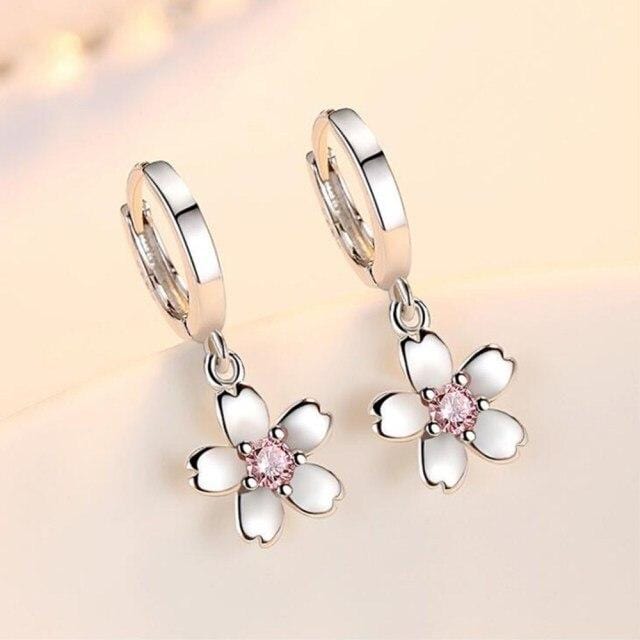 NEHZY 925 sterling silver new woman jewelry Cubic Zirconia Long paragraph tassel earrings Five-leaf flower Pink