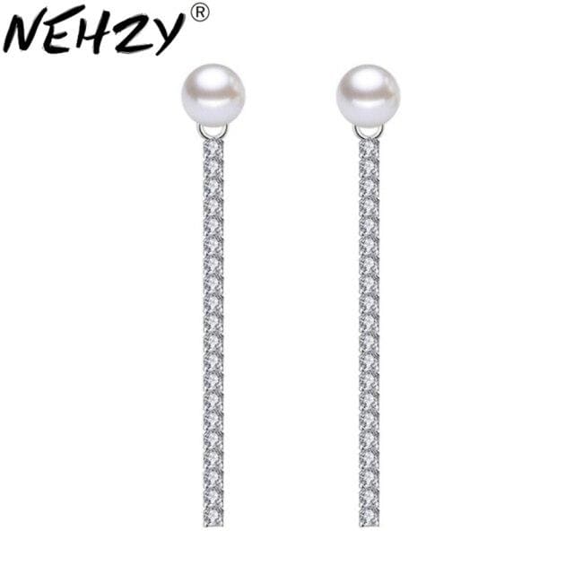 NEHZY 925 sterling silver new woman jewelry Fashion brand Drop Earrings long section tassel imitation pearl luxury crystal