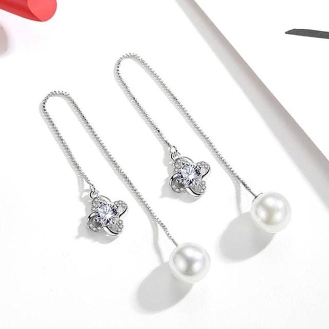 NEHZY 925 sterling silver new woman jewelry Fashion High Quality Earrings Freshwater Pearl Four Leaf Flower Semi Long Tassel