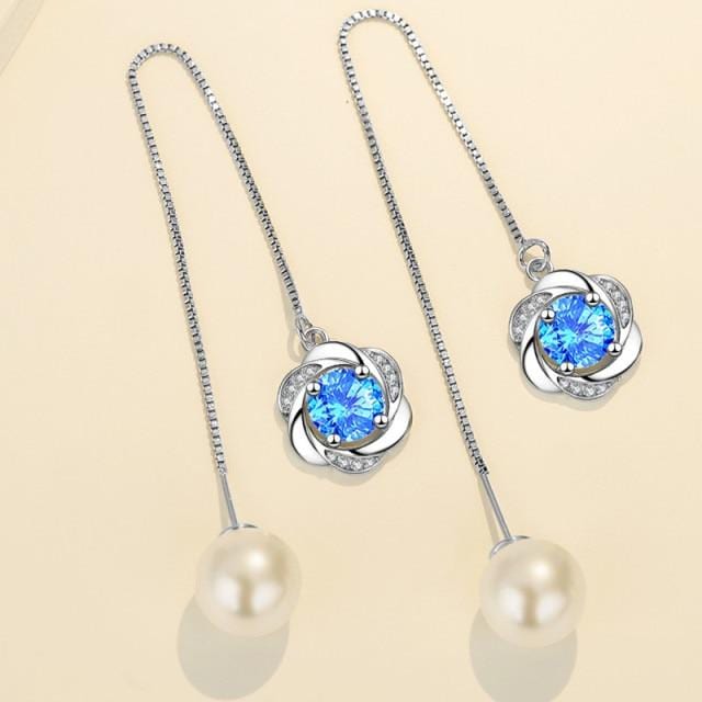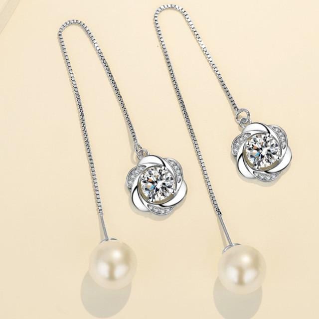 NEHZY 925 Sterling Silver New Women's Fashion Jewelry Ear Lines High Quality Crystal Zircon Pearl Long Tassel Flower Earrings