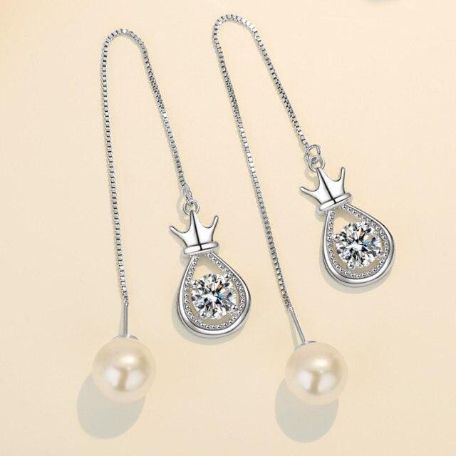 NEHZY 925 Sterling Silver New Women's Fashion Jewelry Earline High Quality Crystal Zircon Pearl Long Tassel Crown Earrings