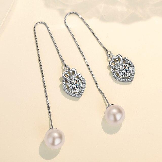 NEHZY 925 Sterling Silver New Women's Fashion Jewelry Earline High Quality Crystal Zircon Pearl Long Tassel Heart Earrings