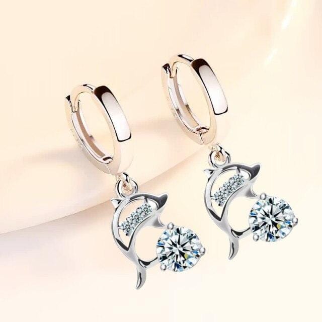 NEHZY 925 sterling silver new women's fashion jewelry earrings blue crystal pink zircon dolphin long tassel retro earrings