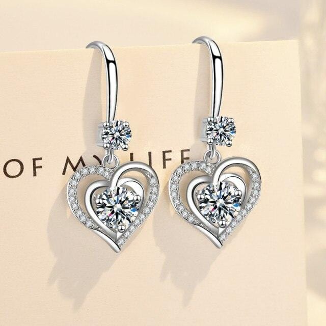 NEHZY 925 Sterling Silver New Women's Fashion Jewelry High Quality Crystal Zircon Hook Type Long Tassel Heart-shaped Earrings