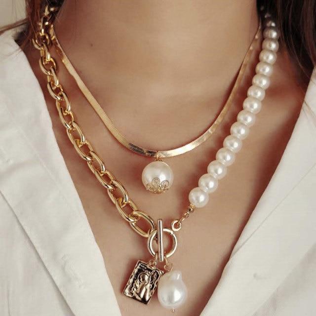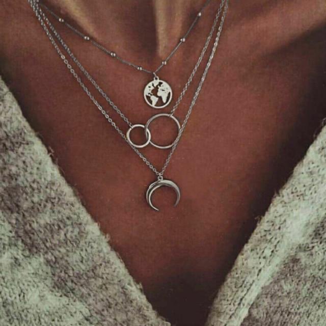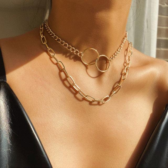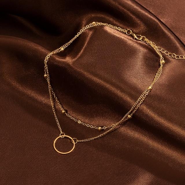 NEW Choker Chains Necklace Women Two Layer Round Necklaces Gold Color Necklace Chocker Neck Fashion collier femme collar rasae
