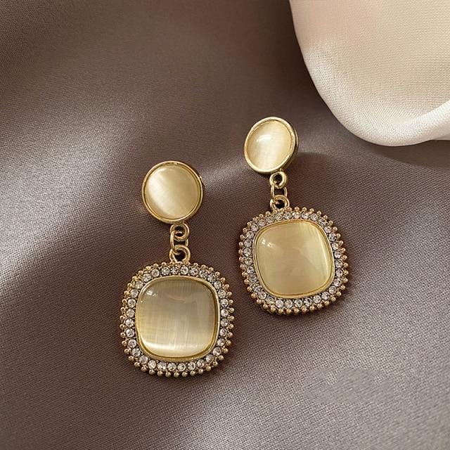 New Classic Geometric Pearl Opal Square Drop Earrings For Woman 2021 Korean Fashion Jewelry Wedding Party Girl's Unusual Earring