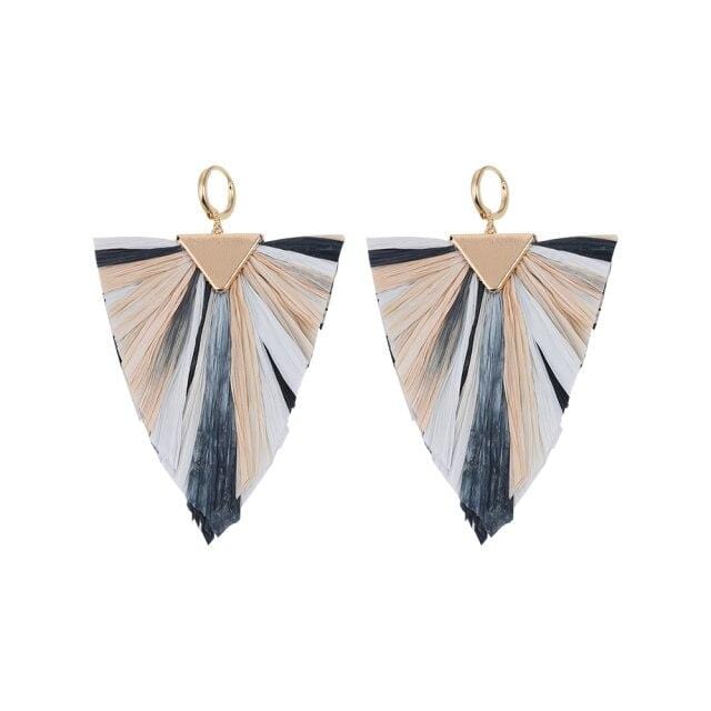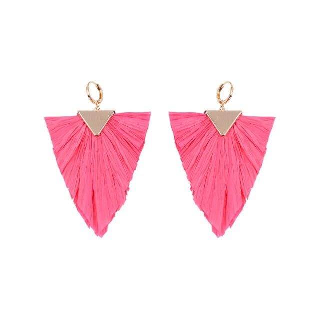 New Design Handmade Lafite Tassel Earring for Women Boho Multicolor Triangle Geometric Raffia Dangle Earring Party Jewelry Gifts