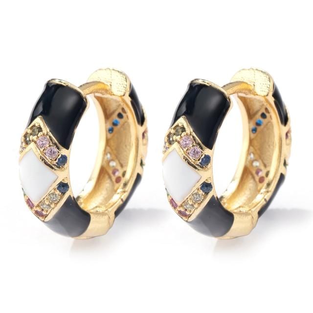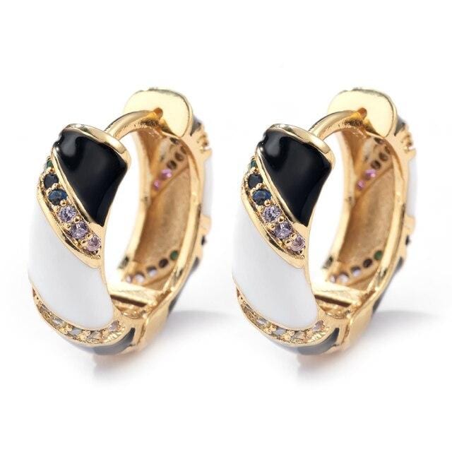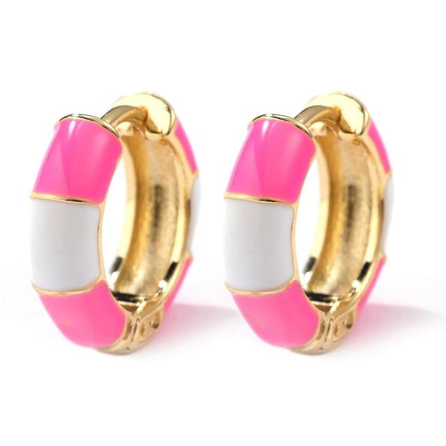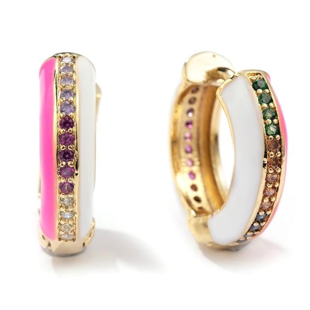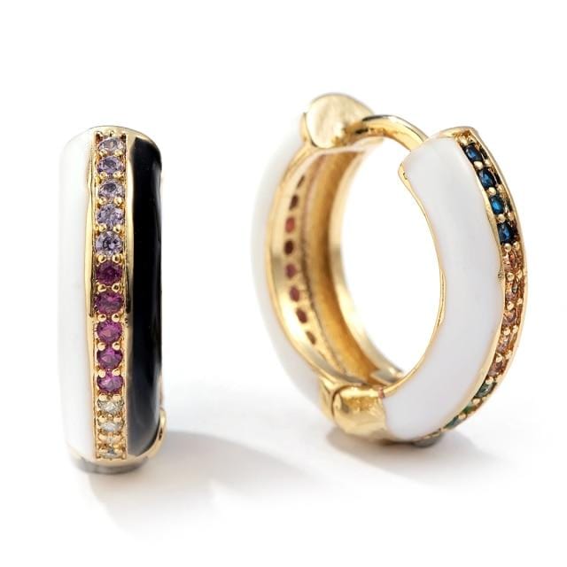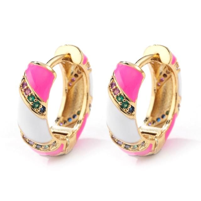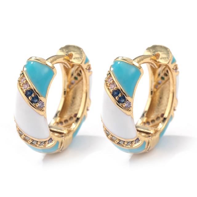 New Design Multicolor Enamel Small Huggie Hoop Earrings Trendy Rainbow CZ circle Earrings For Women Zircon Jewerly Gifts