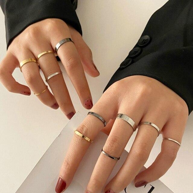 New Design Punk Style Gold Twist Chain Rings Set for Women Girls Fashion Hollow Round Thin Finger Rings Female Jewelry 2021