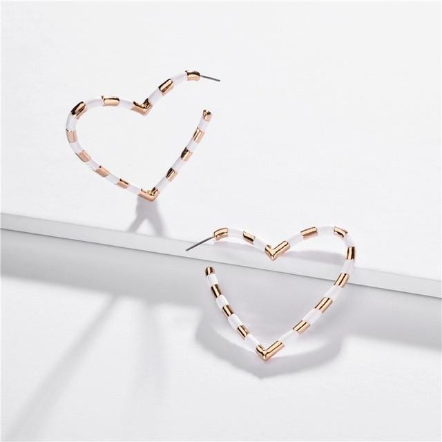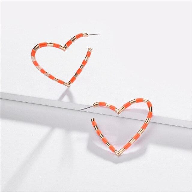 New Fashion Big Heart Metal Enamel Earring For Women Boho Rainbow Geometric statement Stud Earring Simple Brincos Jewelry
