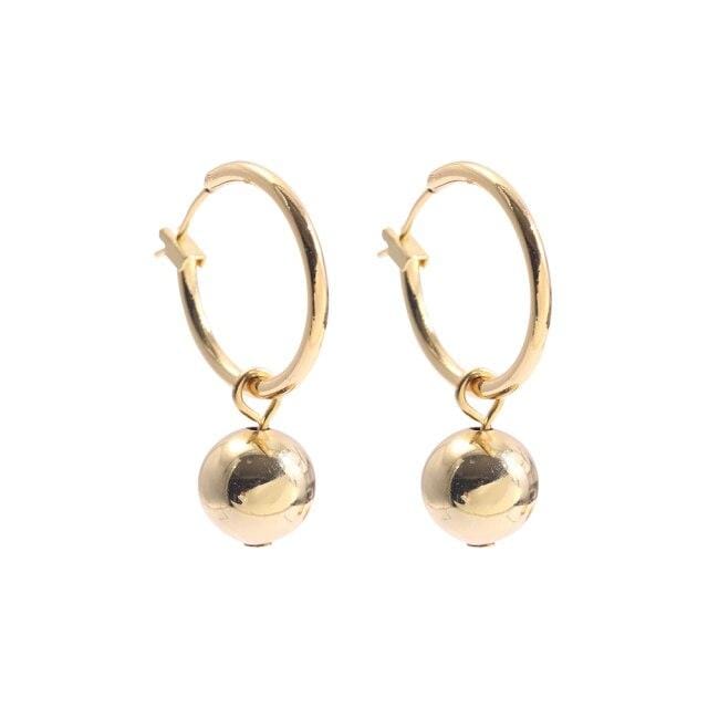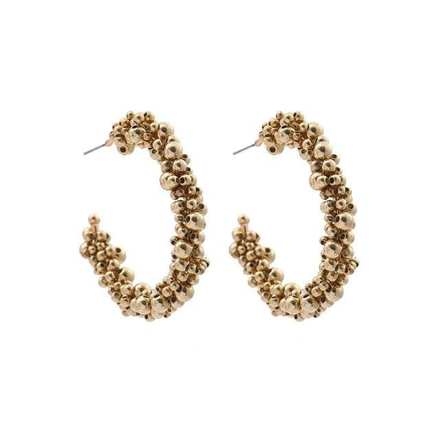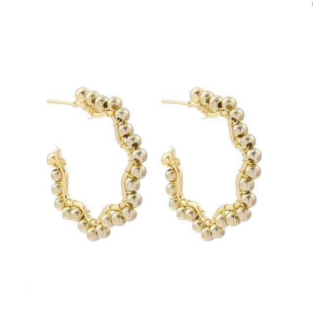 New Fashion Gold Beads Round Circle Hoop Earrings for Women Trendy Geometric Chunky Hoops Statement Ear Piercing Jewelry