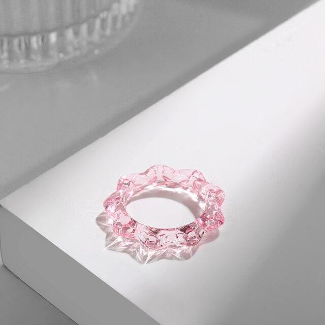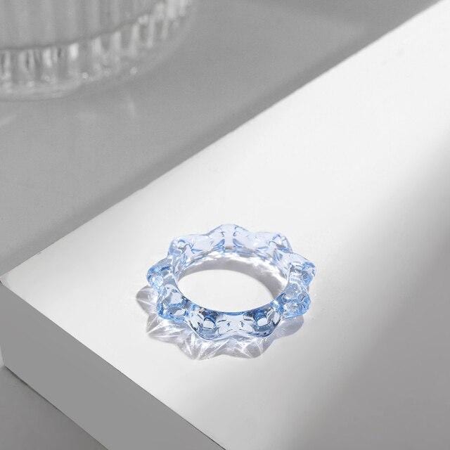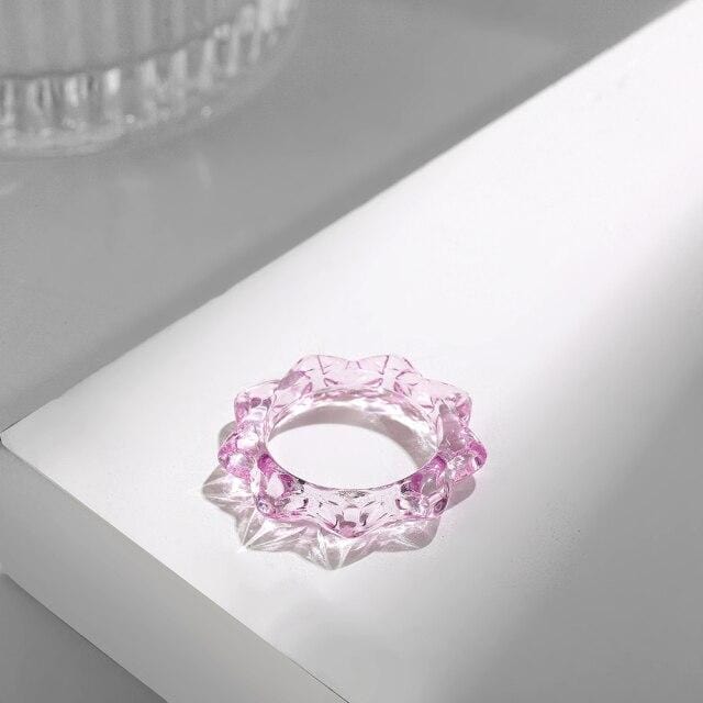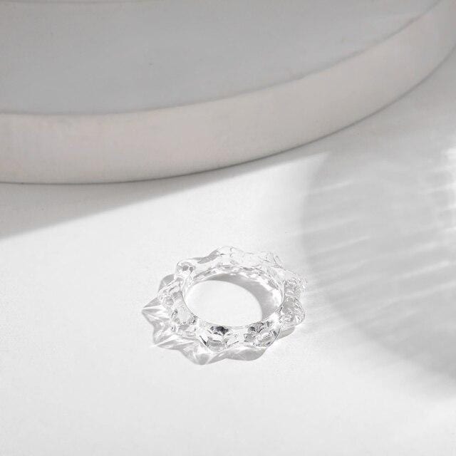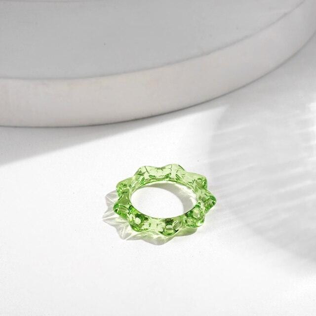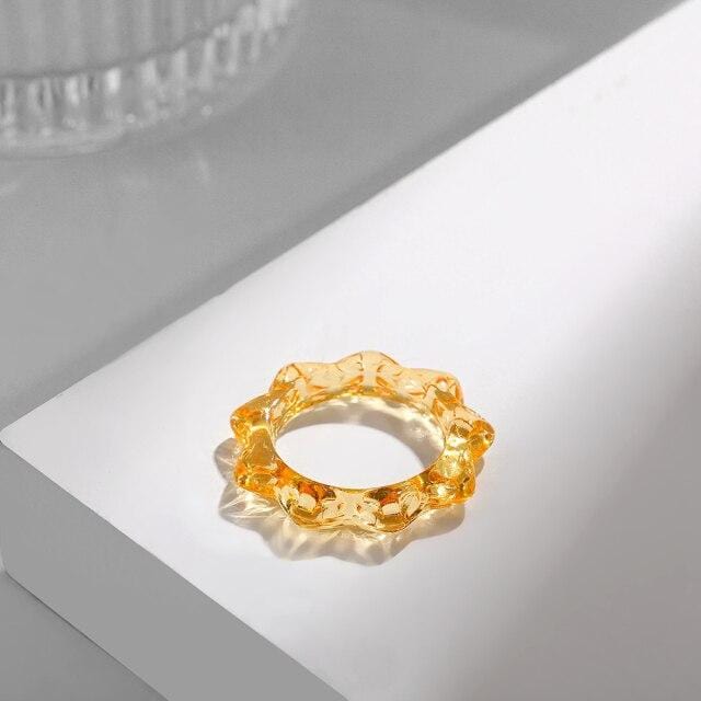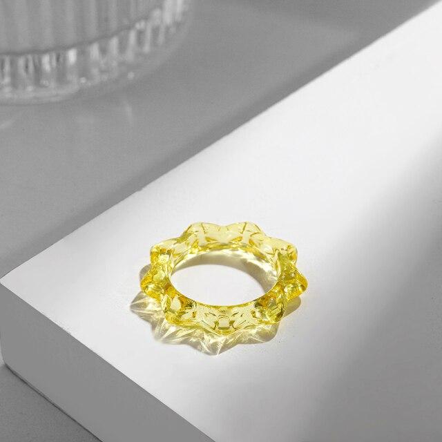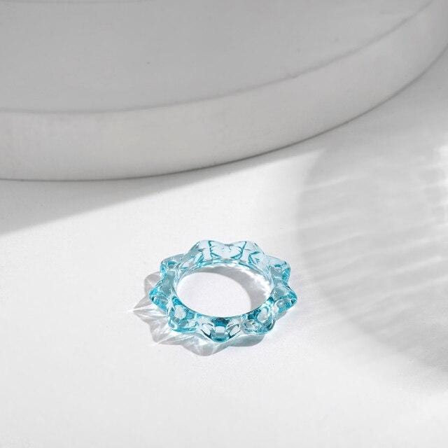 New Fashion Transparent Colorful Acrylic Resin Rings Women Flower Shaped Circle Polygonal Star Stacked Ring Korean Jewelry Gifts