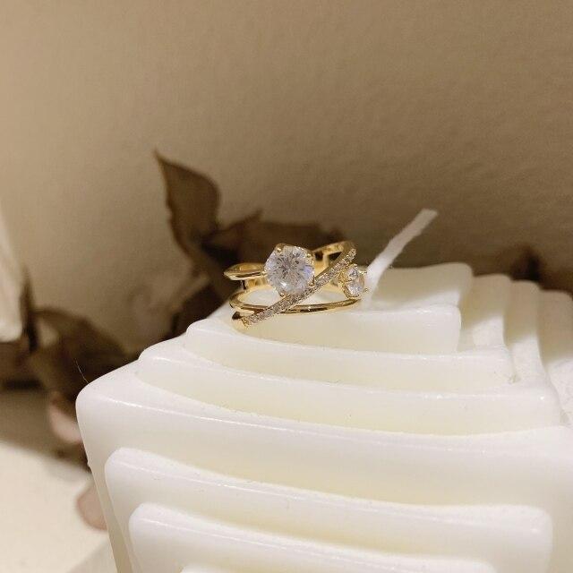 New Gothic Hollow Out Square Metal Gold Zircon Opening Rings For Woman Fashion Shining Jewelry Student Party Luxury Unusual Ring