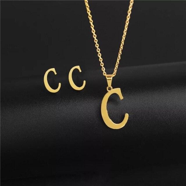 New Initial A-Z Letters Pendant Necklace for Women Men Trendy Stainless Steel Link Sweater Chain Necklaces Jewelry Gift