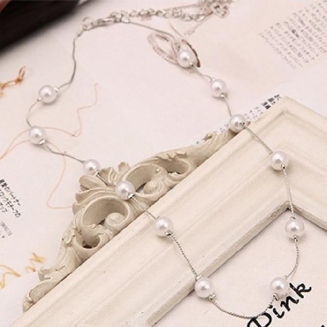 New Long double layer Simulated Pearl Necklace Women Sweater Chain Necklace female Collares Statement Jewlery Wholesale 2019