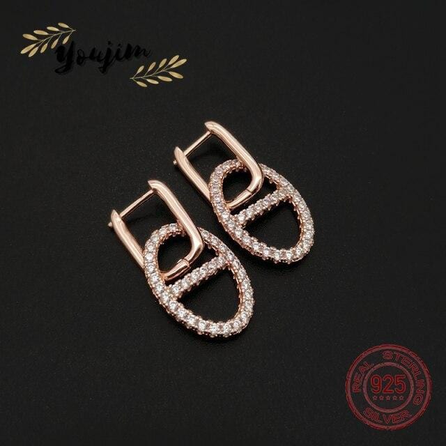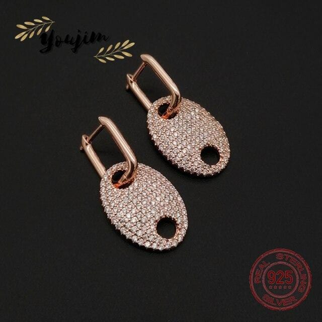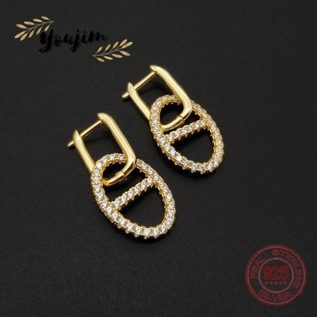 New Luxury Shiny Zircon 925 Silver Pig Nose Earrings Women Elegant Fashion Jewelry Monaco Boutique Gifts