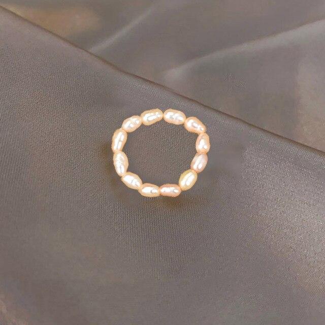 New Minimalist Multi Bead Freshwater Pearl Geometric Rings Women Finger Jewelry Fashion Adjustable Elastic Ring
