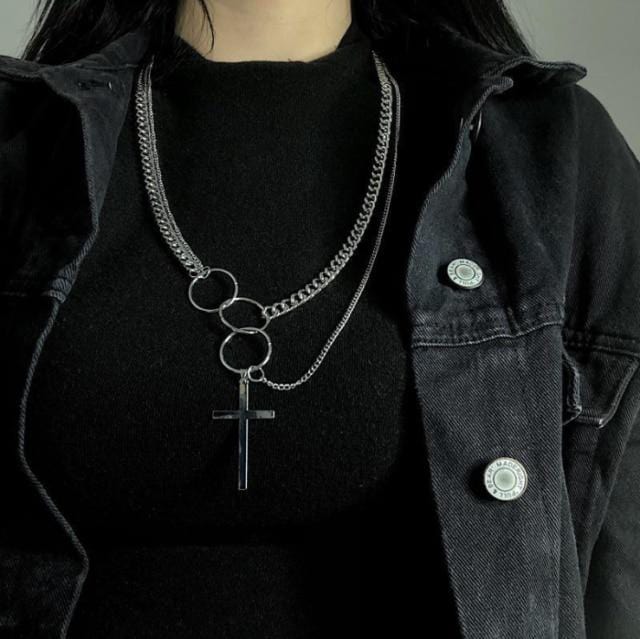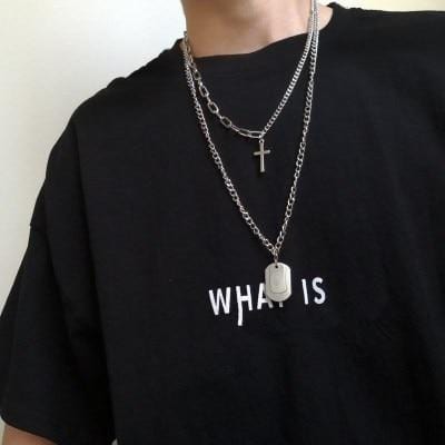New Personality Cross Square Metal Multilayer Hip hop Long Chain Cool Simple Necklace For Women men Jewelry Gifts 19