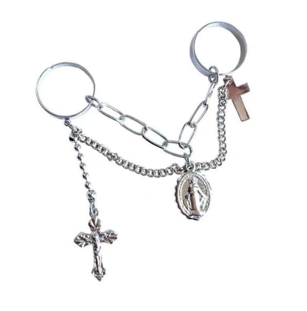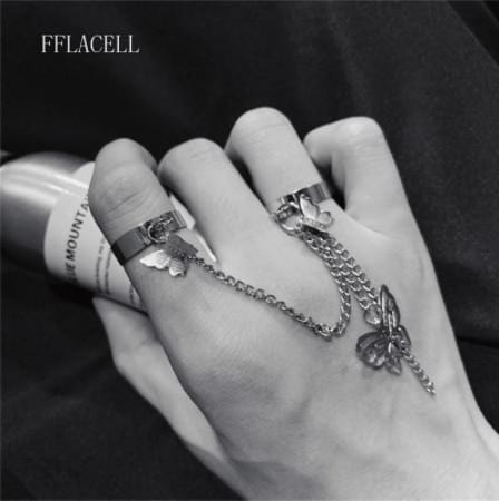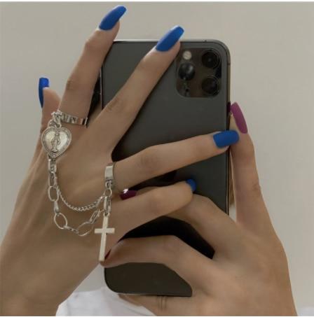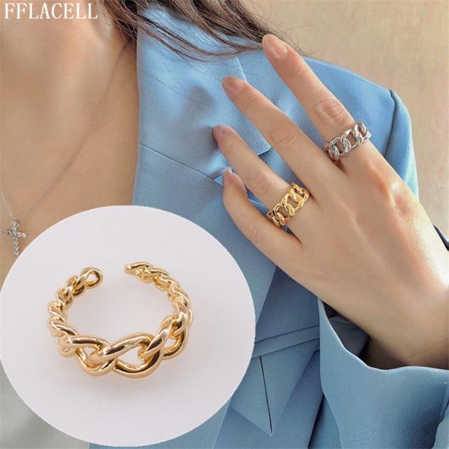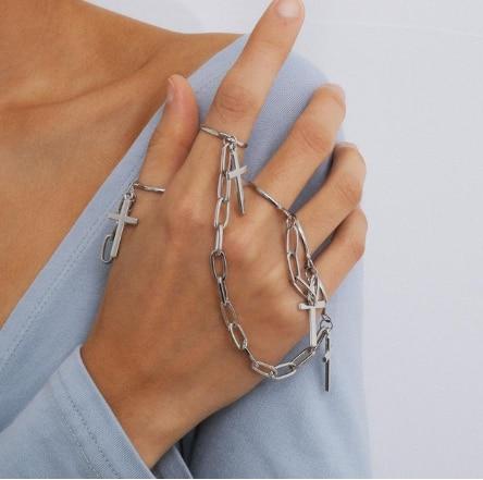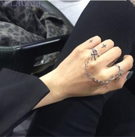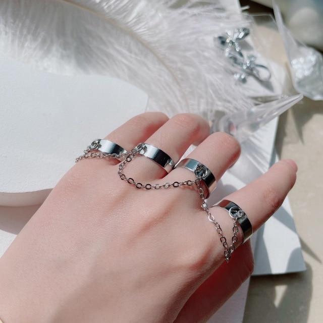 New Punk Cool Hip Pop Rings Multi-layer Adjustable Chain Four Open Finger Rings Alloy Women Rotate Rings for Women Party Gift