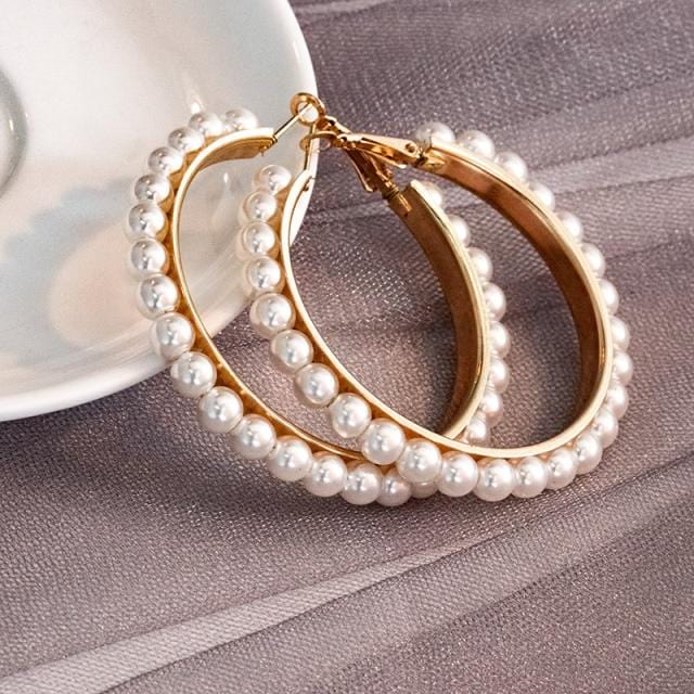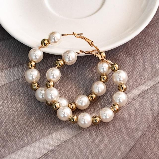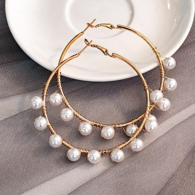 New Simple Korean Plain Gold Metal Pearl Hoop Earrings For Women Unique Statement Big earings 2020 Fashion Brincos Party Jewelry