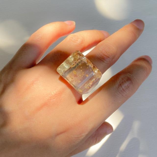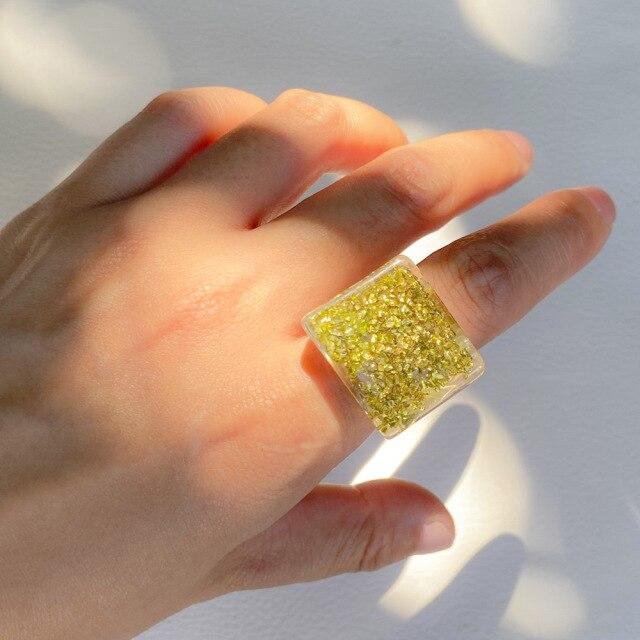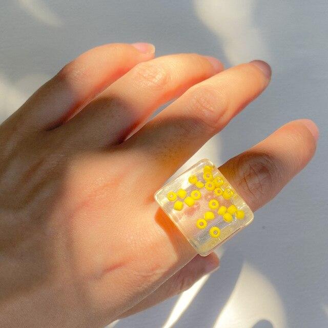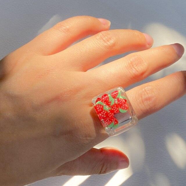 New Transparent Resin Acrylic Geometric Square Round Chunky Rings for Women Colorful Fruit Flowers Ring Jewelry Party Gifts