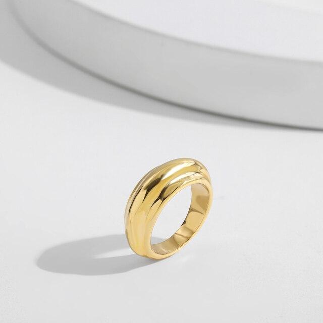 New Trendy Gold Chunky Circle Geometric Textured Rings for Women Simple Crystal Couple Rings Fashion Finger Jewelry Gifts