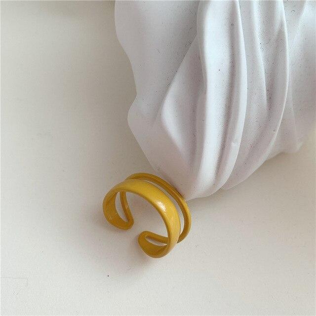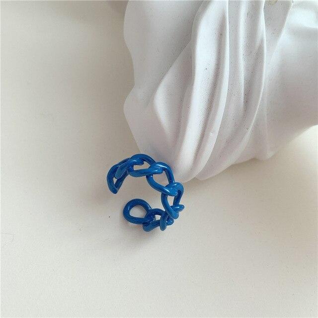 New Trendy Irregular Geometric Solid Color Hand-painted Open Rings for Women Metal Stacked Chain Rings Party Jewelry 2021