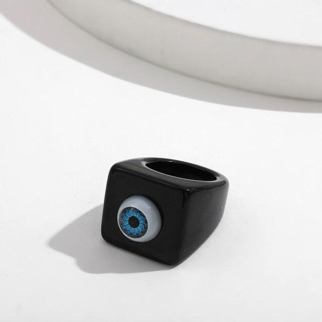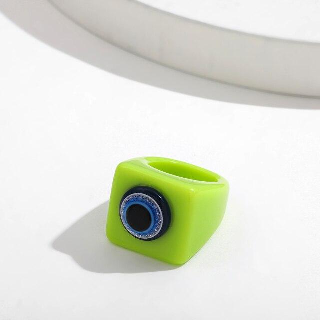 New Trendy Turkish Evil Eye Blue Transparent Resin Round Rings for Women Big Geometric Square Chunky Rings Summer Jewelry Gifts