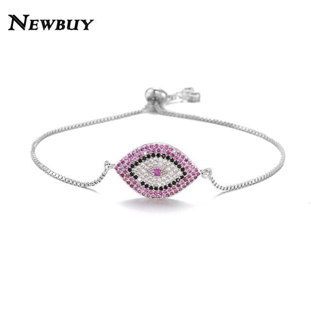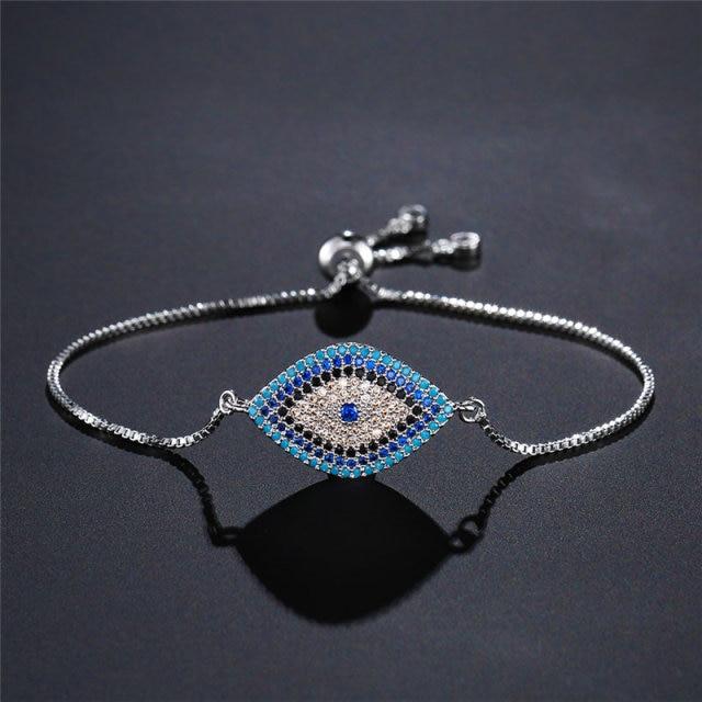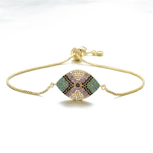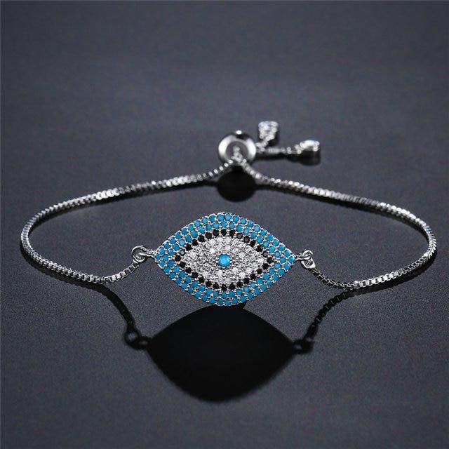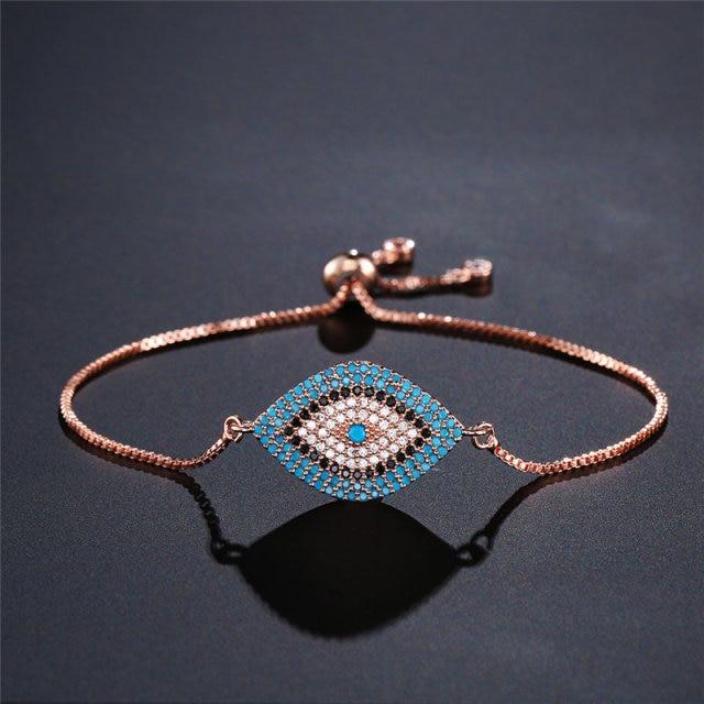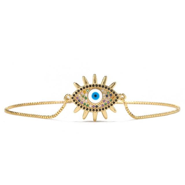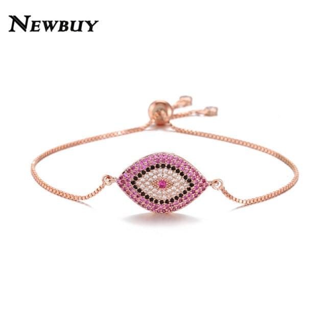 NEWBUY 2021 Trendy Turkish Gold Evil Eye Bracelet Pave CZ Blue Eye Gold Chain Bracelet Adjustable Female Party Jewelry