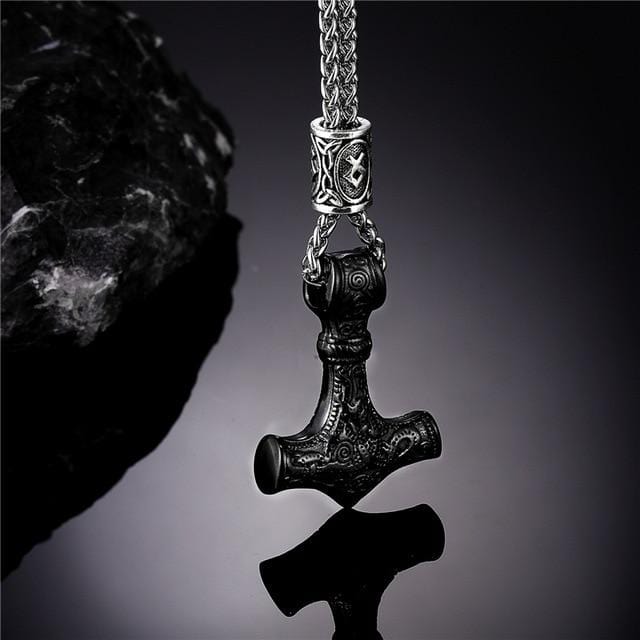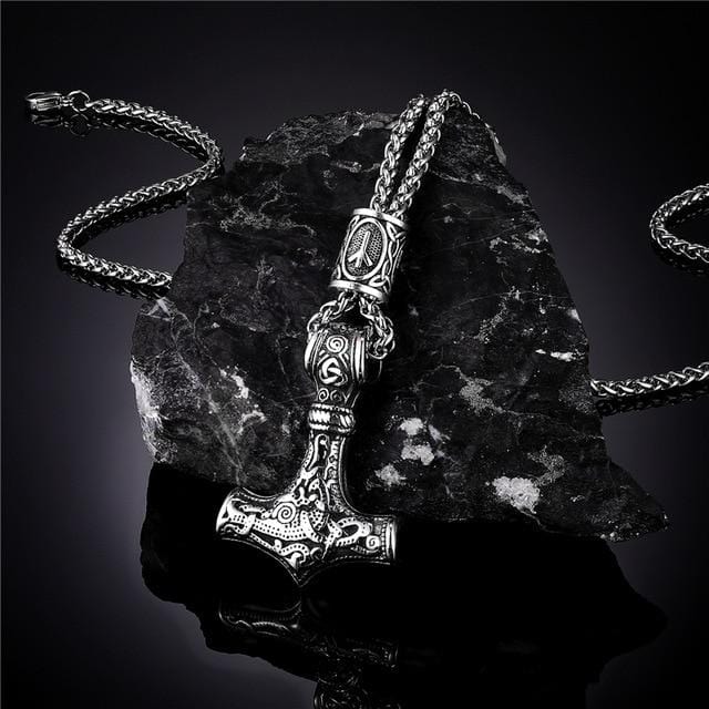 Norse Vikings Thor's Hammer Mjolnir Scandinavian Rune Amulet Necklace Stainless Steel Chain Vegvisir Anchor Pendant Male Jewelry