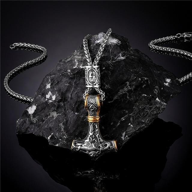 Norse Vikings Thor's Hammer Mjolnir Scandinavian Rune Amulet Necklace Stainless Steel Chain Vegvisir Anchor Pendant Male Jewelry