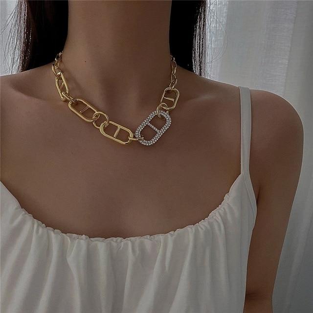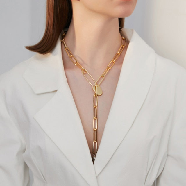 Peri'sBox Box Chain Toggle Clasp Gold Necklaces Mixed Linked Circle Necklaces for Women Minimalist Choker Necklace Hot Jewelry