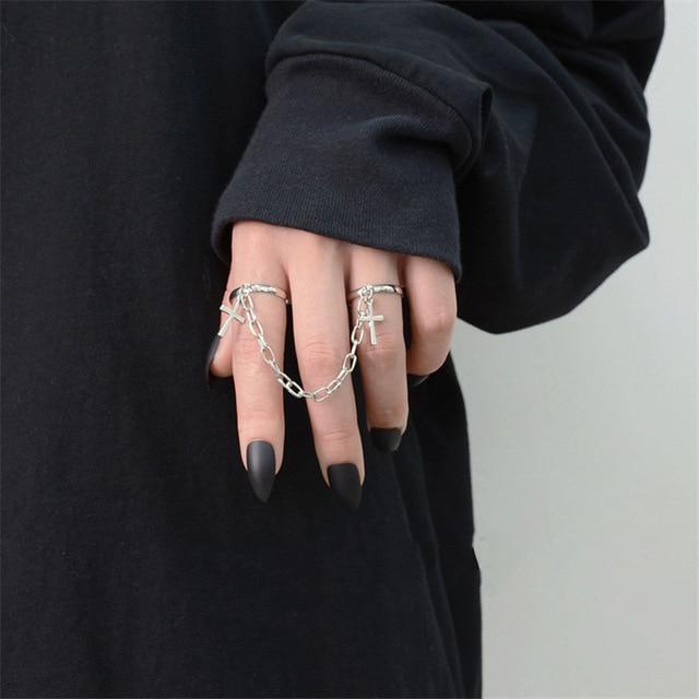 Punk Cool Hip Pop Rings Multi-layer Adjustable Chain Four Open Finger Rings Alloy man Rotate Rings for Women Party Gift