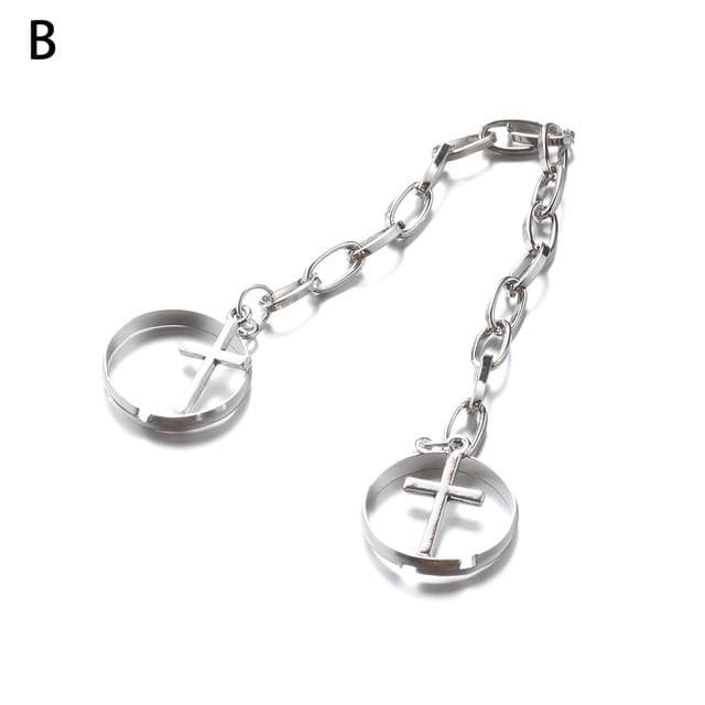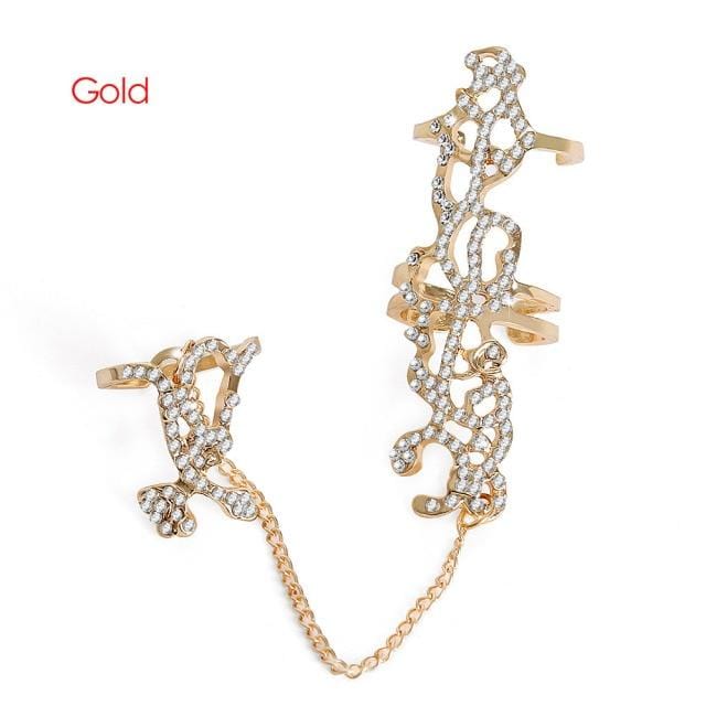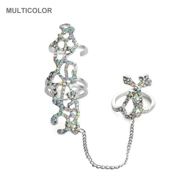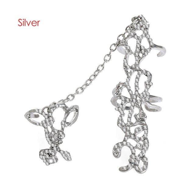 Punk Cool Hip Pop Rings Multi-layer Adjustable Chain Four Open Finger Rings Alloy Women Rotate Rings for Women Party Gift