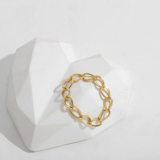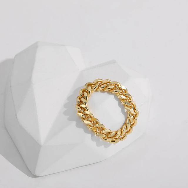 Punk Gold Wide Thick Cuban Link Chain Rings for Women Men Couples Gothic Geometric Twisted Chain Ring Finger Jewelry Gifts