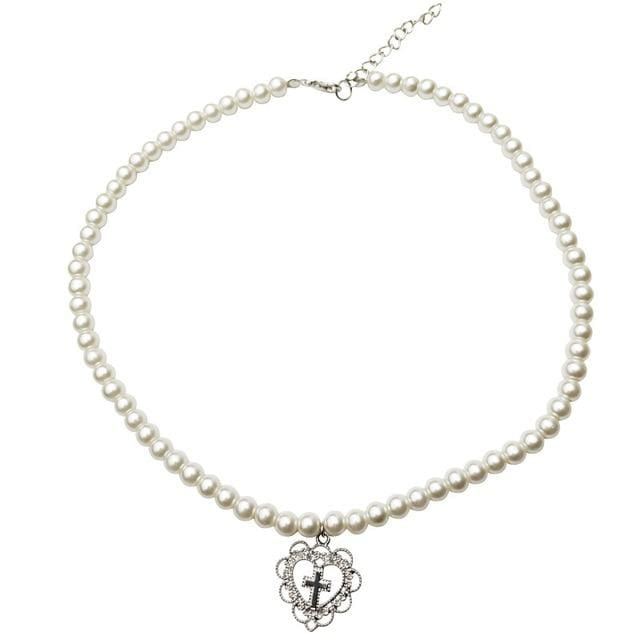 Punk Gothic Harajuku Pearl Chain Hollow Heart Shaped Pendant Retro Court Cross Choker Necklace Fashion Jewelry for Women Girls