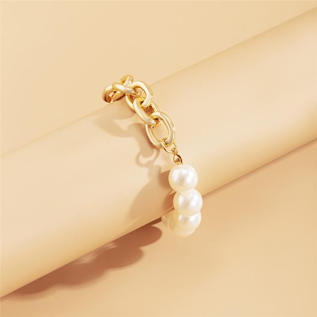 Punk Imitation Pearl Lock Chain Bracelets Women Wedding Vintage Aluminum Beaded Link Bracelet Bangles Fashion Charm Jewelry Gift